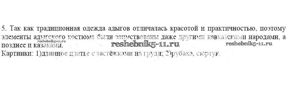 Готовая домашняя работа с ответами по Кубановедению за 7 класс Лукьянов Рабочая тетрадь Перспективы образования 2018 - 12. Материальная культура адыгов 5