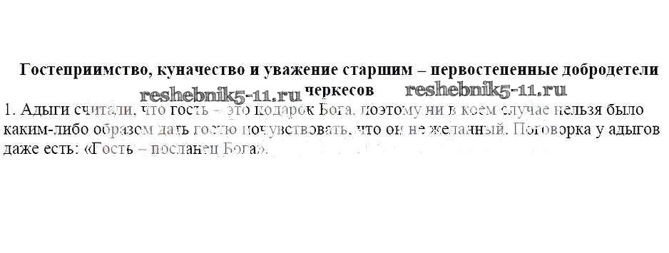 Готовая домашняя работа с ответами по Кубановедению за 7 класс Лукьянов Рабочая тетрадь Перспективы образования 2018 - 13. Гостеприимство, куначество и уважение старшим – первостепенные добродетели черкесов 1