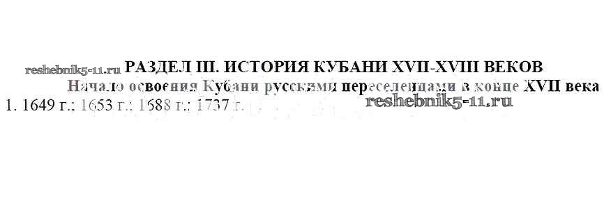 Готовая домашняя работа с ответами по Кубановедению за 7 класс Лукьянов Рабочая тетрадь Перспективы образования 2018 - 17. Начало освоения Кубани русскими переселенцами в конце XVII века 1