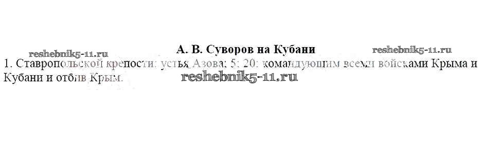 Готовая домашняя работа с ответами по Кубановедению за 7 класс Лукьянов Рабочая тетрадь Перспективы образования 2018 - 20. А. В. Суворов на Кубани 1