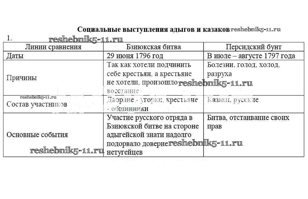 Готовая домашняя работа с ответами по Кубановедению за 7 класс Лукьянов Рабочая тетрадь Перспективы образования 2018 - 24. Социальные выступления адыгов и казаков 1