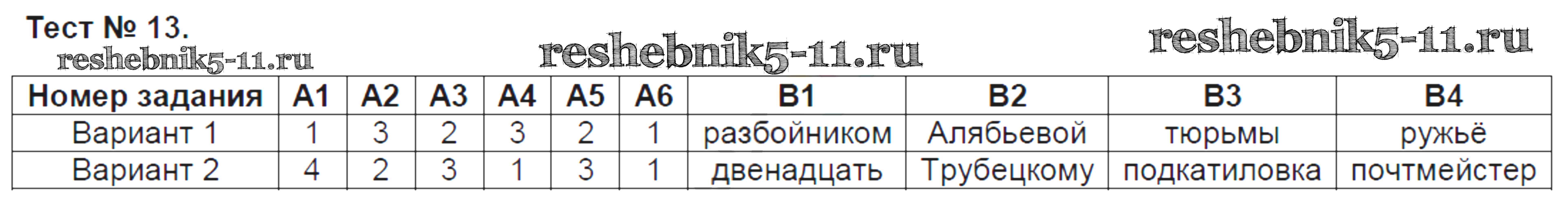 Готовая домашняя работа с ответами по Литературе за 7 класс Зубова Контрольно-измерительные материалы (КИМ) ВАКО 2016 ФГОС - Тесты Тест №13