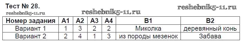 Готовая домашняя работа с ответами по Литературе за 7 класс Зубова Контрольно-измерительные материалы (КИМ) ВАКО 2016 ФГОС - Тесты Тест №28