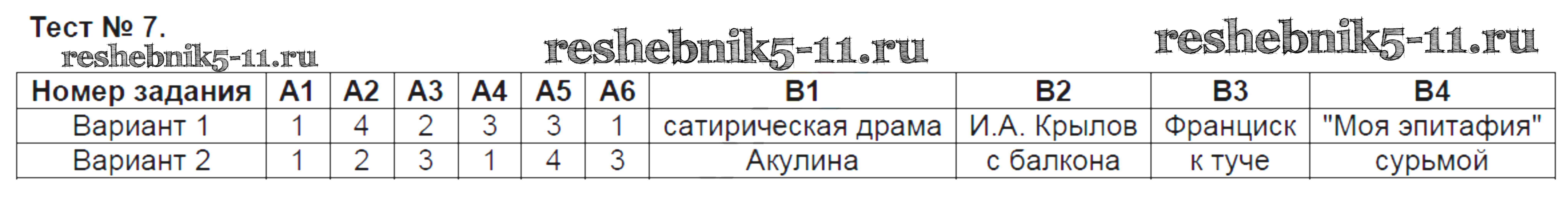 Готовая домашняя работа с ответами по Литературе за 7 класс Зубова Контрольно-измерительные материалы (КИМ) ВАКО 2016 ФГОС - Тесты Тест №7