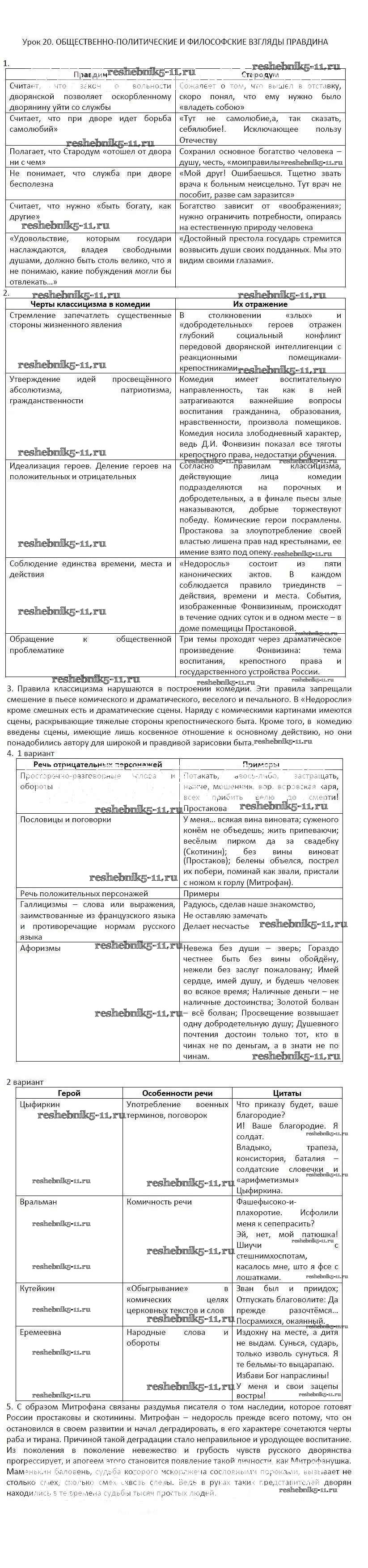 Готовая домашняя работа с ответами по Литературе за 7 класс Соловьева Рабочая тетрадь Инновационная школа Часть 1, 2 Русское слово 2016 ФГОС - Уроки 20