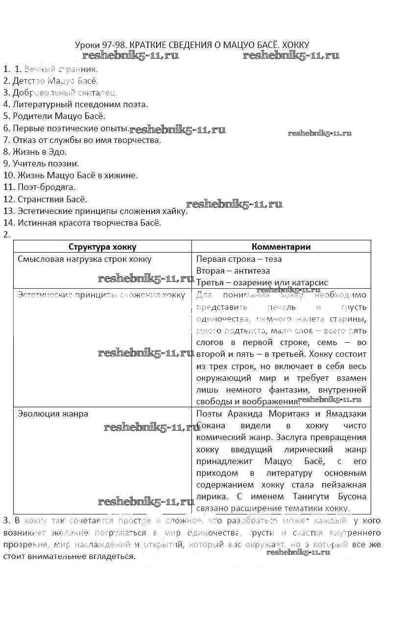 Готовая домашняя работа с ответами по Литературе за 7 класс Соловьева Рабочая тетрадь Инновационная школа Часть 1, 2 Русское слово 2016 ФГОС - Уроки 97