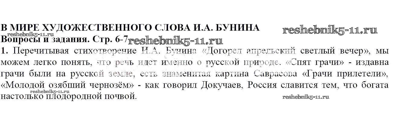 Решебник / часть 2 / В мире художественного слова Бунина / Вопросы и задания (стр. 6-7) / 1