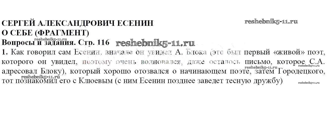 Решебник / часть 2 / Сергей Александрович Есенин. О себе (фрагмент) / Вопросы и задания / 1