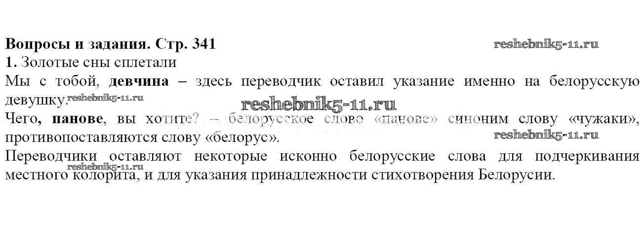 Готовая домашняя работа с ответами по Литературе за 7 класс Меркин Учебник Инновационная школа Часть 1, 2 Русское слово 2017 ФГОС - Вопросы и задания (стр. 341) 1