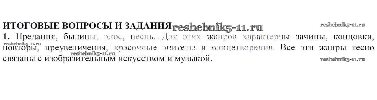 Литература за 7 класс Меркин Учебник Инновационная школа Русское слово Итоговые вопросы и задания 1