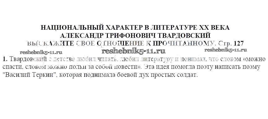 Решебник / часть 2 / Национальный характер в литературе XX века. Александр Трифонович Твардовский / Выскажите свое отношение к прочитанному / 1