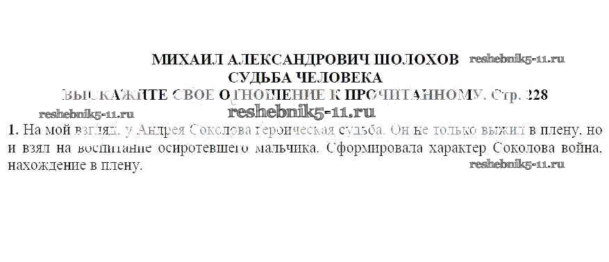 Решебник / часть 2 / Михаил Александрович Шолохов. Судьба человека / Выскажите свое отношение к прочитанному / 1