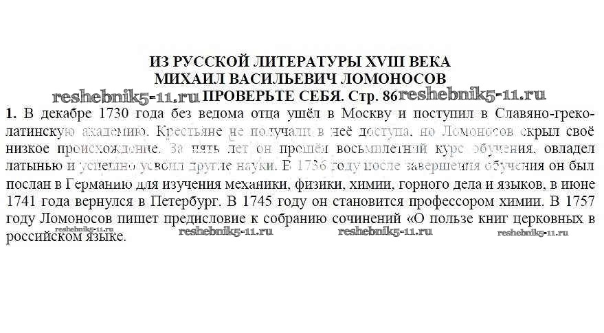 Решебник / часть 1 / Из русской литературы XVIII века. Михаил Васильевич Ломоносов / Проверьте себя / 1
