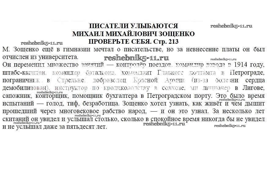 Готовая домашняя работа с ответами по Литературе за 7 класс Коровина, Журавлев, Коровин Учебник Часть 1, 2 Просвещение 2016 ФГОС - Писатели улыбаются. Михаил Михайлович Зощенко Проверьте себя