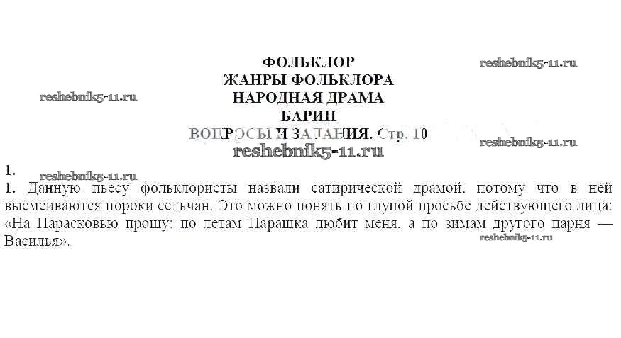 Решебник / часть 1 / Фольклор. Жанры фольклора. Народная драма. Барин / Вопросы и задания / 1
