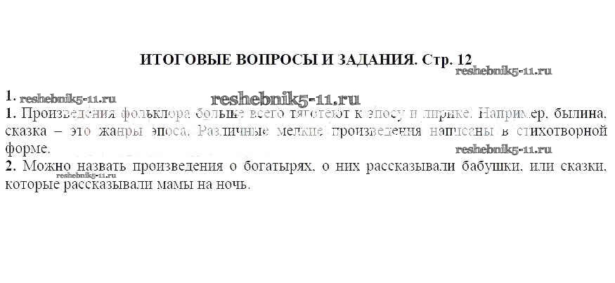 Готовая домашняя работа с ответами по Литературе за 7 класс Курдюмова Учебник-хрестоматия Вертикаль Часть 1, 2 Дрофа 2018 ФГОС - Итоговые вопросы и задания 1