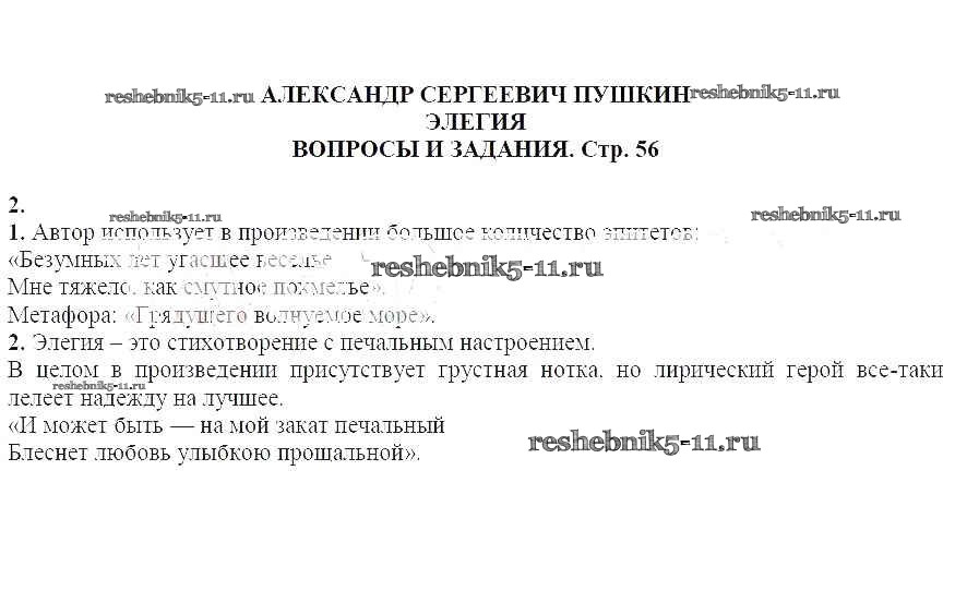 Решебник / часть 1 / Александр Сергеевич Пушкин. Элегия / Вопросы и задания / 2