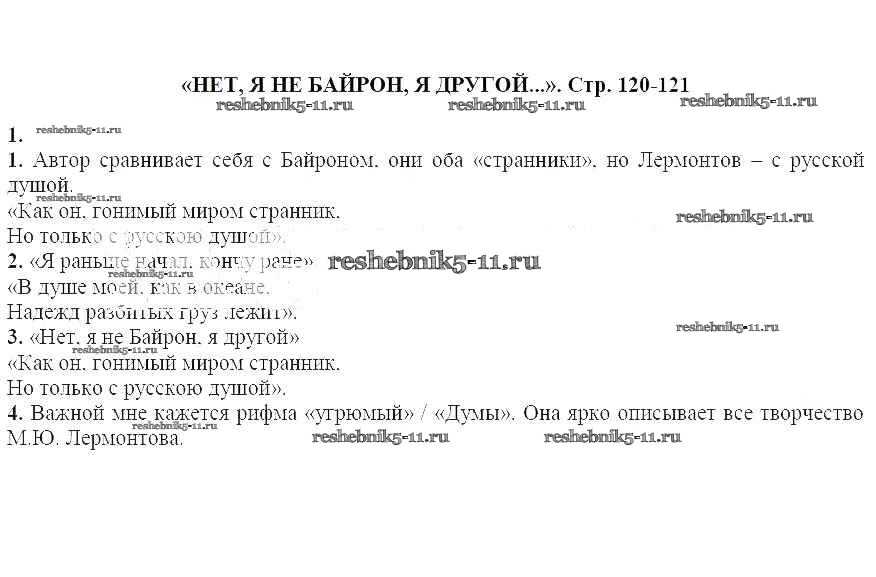 Готовая домашняя работа с ответами по Литературе за 7 класс Курдюмова Учебник-хрестоматия Вертикаль Часть 1, 2 Дрофа 2018 ФГОС - Нет, я не Байрон, я другой... 1