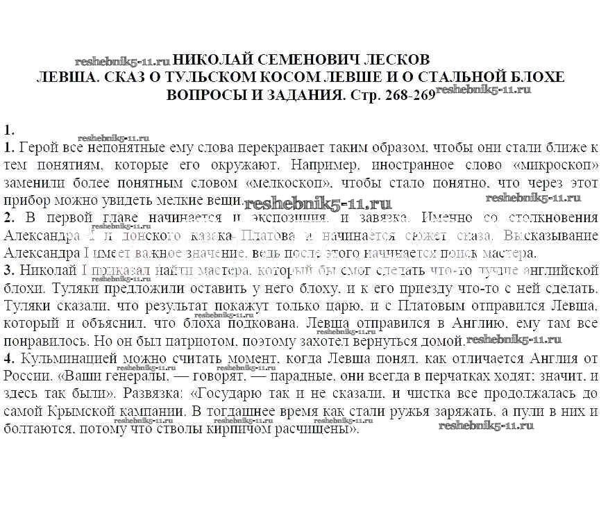 Решебник / часть 1 / Николай Семенович Лесков. Левша. Сказ о тульском косом левше и о стальной блохе / Вопросы и задания / 1