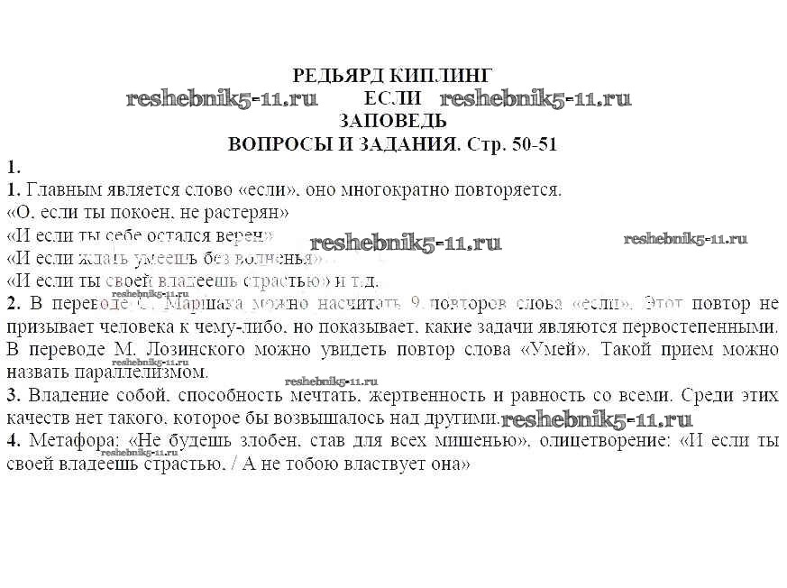 Решебник / часть 2 / Редьярд Киплинг. Если. заповедь / Вопросы и задания / 1