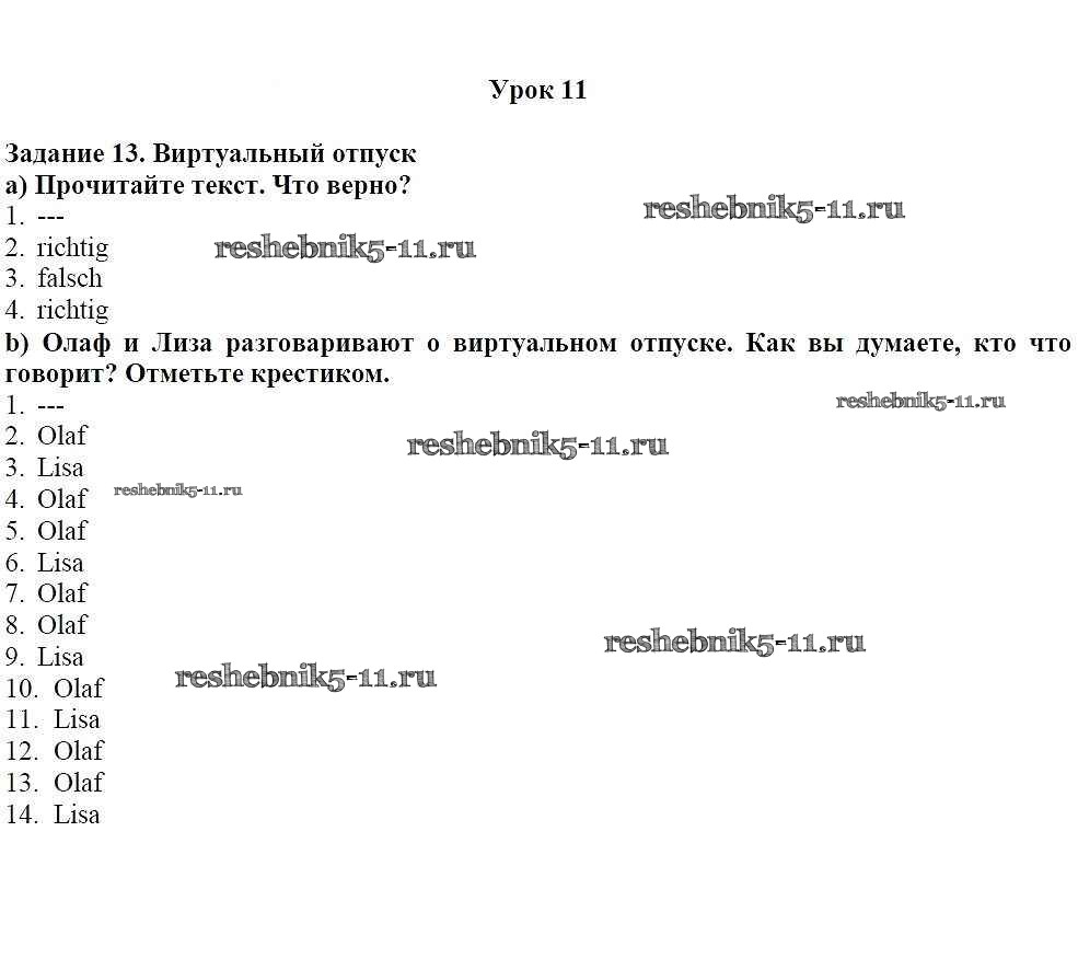 Готовая домашняя работа с ответами по Немецкому языку за 7 класс Радченко, Конго, Хебелер Учебник Wunderkinder Просвещение 2016 ФГОС - Уроки 2-18 13