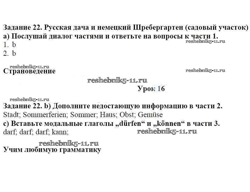 Готовая домашняя работа с ответами по Немецкому языку за 7 класс Радченко, Конго, Хебелер Учебник Wunderkinder Просвещение 2016 ФГОС - Уроки 2-18 22