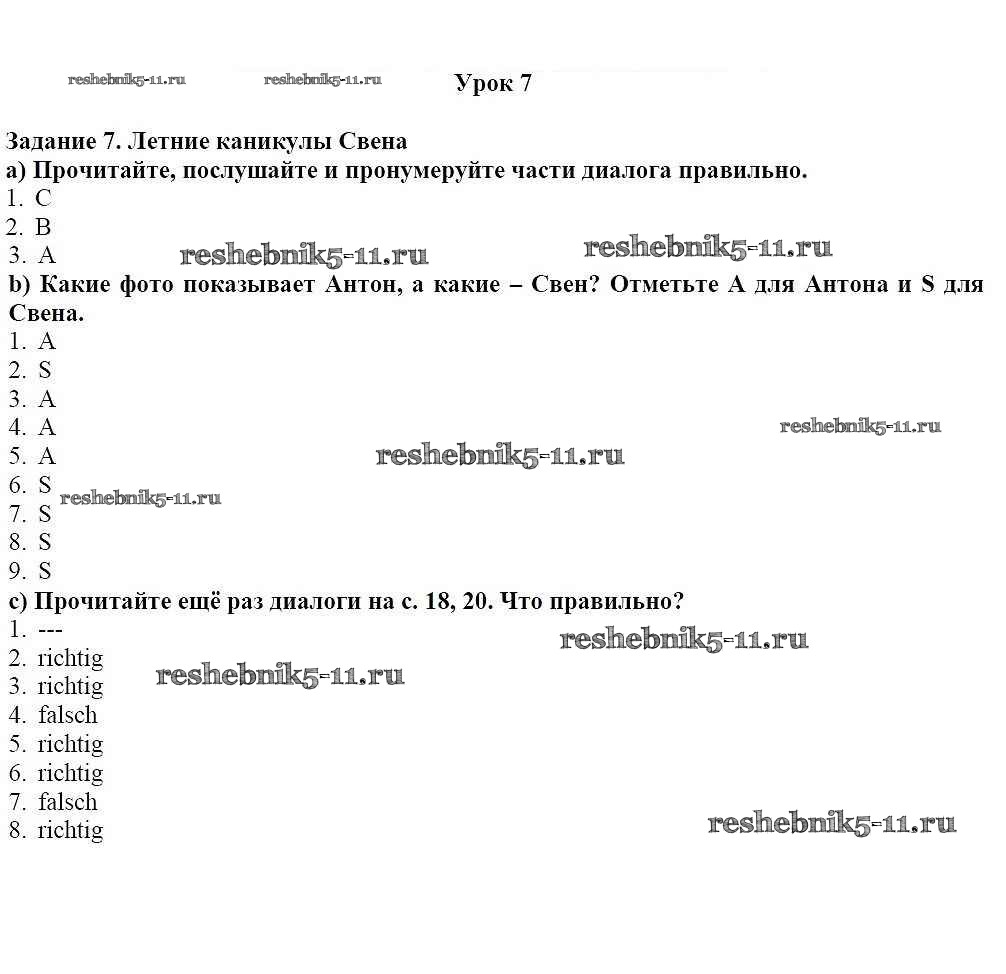 Готовая домашняя работа с ответами по Немецкому языку за 7 класс Радченко, Конго, Хебелер Учебник Wunderkinder Просвещение 2016 ФГОС - Уроки 2-18 7