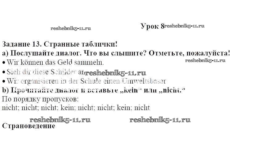 Готовая домашняя работа с ответами по Немецкому языку за 7 класс Радченко, Конго, Хебелер Учебник Wunderkinder Просвещение 2016 ФГОС - Уроки 1-12 13