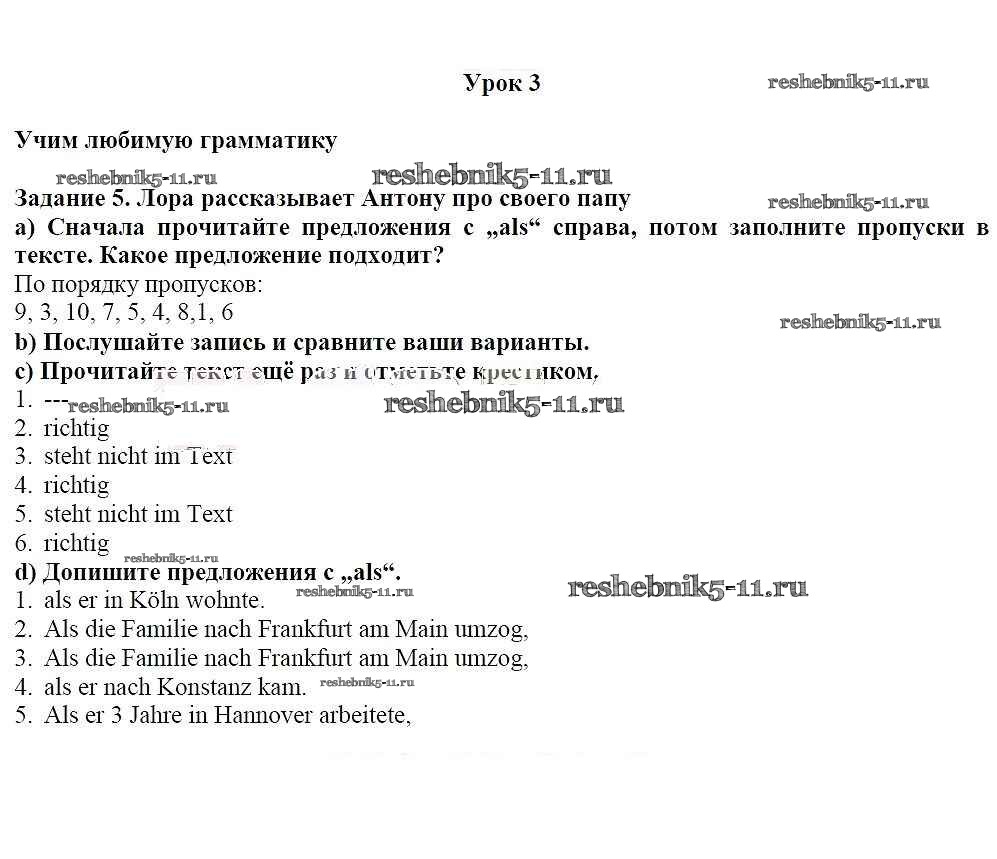 Готовая домашняя работа с ответами по Немецкому языку за 7 класс Радченко, Конго, Хебелер Учебник Wunderkinder Просвещение 2016 ФГОС - Уроки 1-8 5