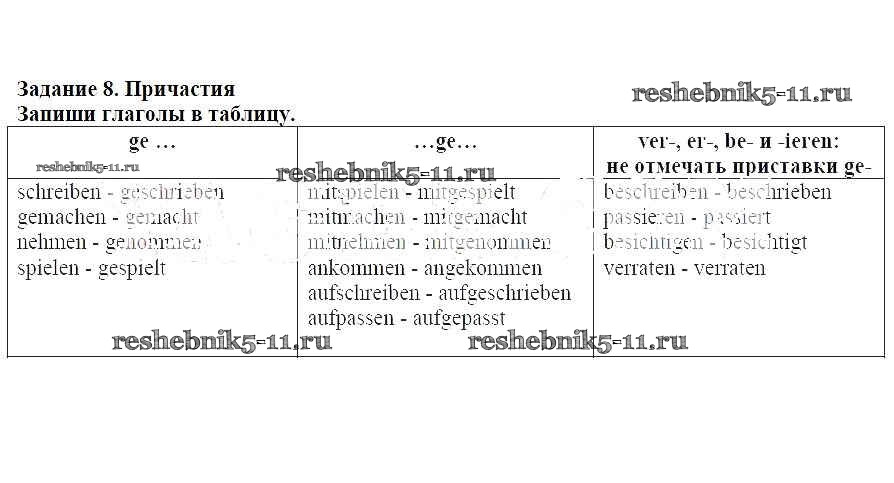 Готовая домашняя работа с ответами по Немецкому языку за 7 класс Аверин, Джин, Рорман, Збранкова Рабочая тетрадь Horizonte Просвещение 2013 ФГОС - Глава 1. Как прошли каникулы 8