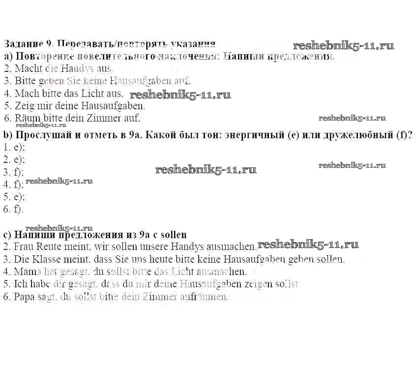 Готовая домашняя работа с ответами по Немецкому языку за 7 класс Аверин, Джин, Рорман, Збранкова Рабочая тетрадь Horizonte Просвещение 2013 ФГОС - Глава 4. Изображения и звуки 9