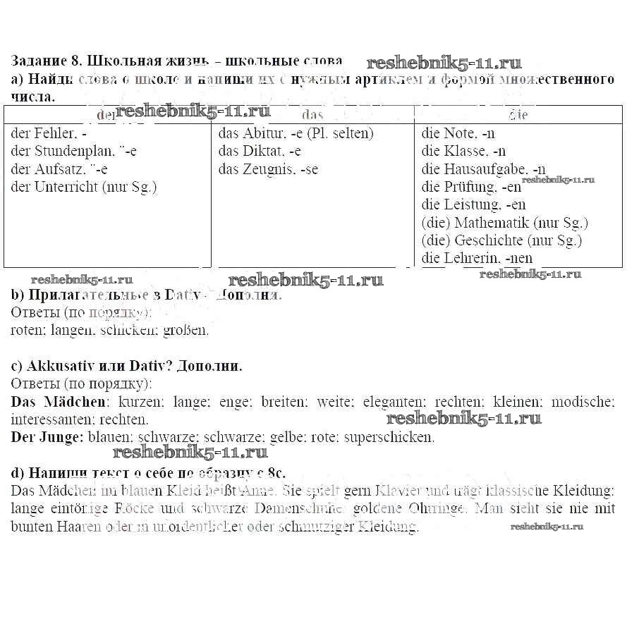 Готовая домашняя работа с ответами по Немецкому языку за 7 класс Аверин, Джин, Рорман, Збранкова Рабочая тетрадь Horizonte Просвещение 2013 ФГОС - Глава 7. Больше обо мне 8
