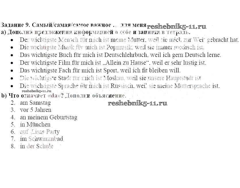 Готовая домашняя работа с ответами по Немецкому языку за 7 класс Аверин, Джин, Рорман, Збранкова Рабочая тетрадь Horizonte Просвещение 2013 ФГОС - Глава 7. Больше обо мне 9