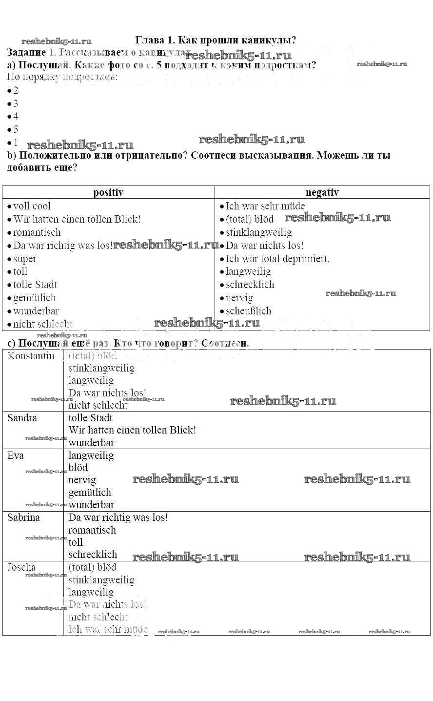 Готовая домашняя работа с ответами по Немецкому языку за 7 класс Аверин, Джин, Рорман Учебник Horizonte Просвещение 2016 ФГОС - Глава 1. Как прошли каникулы 1