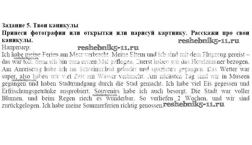 Готовая домашняя работа с ответами по Немецкому языку за 7 класс Аверин, Джин, Рорман Учебник Horizonte Просвещение 2016 ФГОС - Глава 1. Как прошли каникулы 5