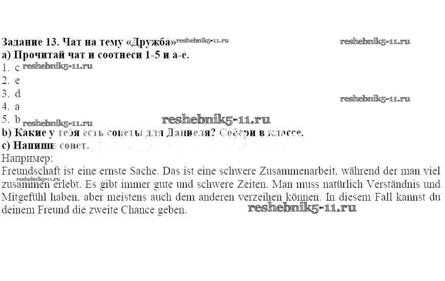 Готовая домашняя работа с ответами по Немецкому языку за 7 класс Аверин, Джин, Рорман Учебник Horizonte Просвещение 2016 ФГОС - Глава 3. Дружба 13