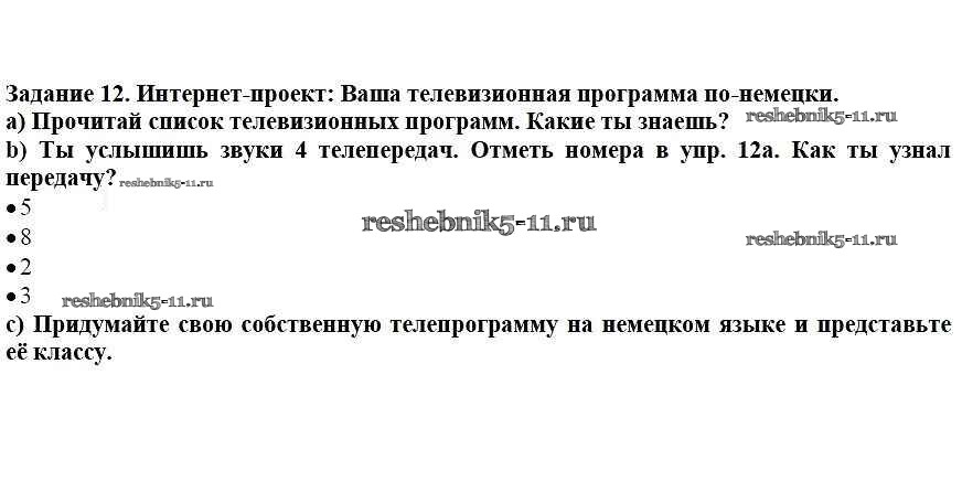 Готовая домашняя работа с ответами по Немецкому языку за 7 класс Аверин, Джин, Рорман Учебник Horizonte Просвещение 2016 ФГОС - Глава 4. Изображения и звуки 12
