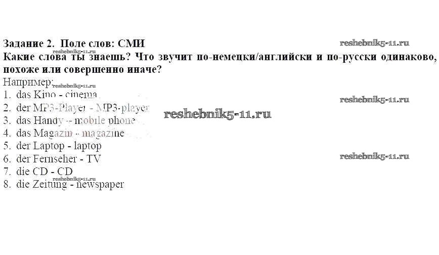 Готовая домашняя работа с ответами по Немецкому языку за 7 класс Аверин, Джин, Рорман Учебник Horizonte Просвещение 2016 ФГОС - Глава 4. Изображения и звуки 2
