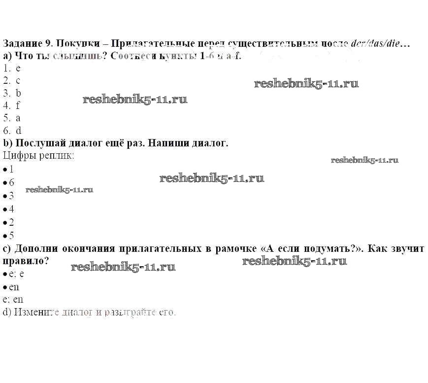 Готовая домашняя работа с ответами по Немецкому языку за 7 класс Аверин, Джин, Рорман Учебник Horizonte Просвещение 2016 ФГОС - Глава 6. Это мне нравится 9