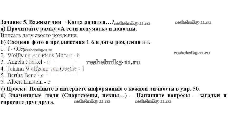 Готовая домашняя работа с ответами по Немецкому языку за 7 класс Аверин, Джин, Рорман Учебник Horizonte Просвещение 2016 ФГОС - Глава 7. Больше обо мне 5