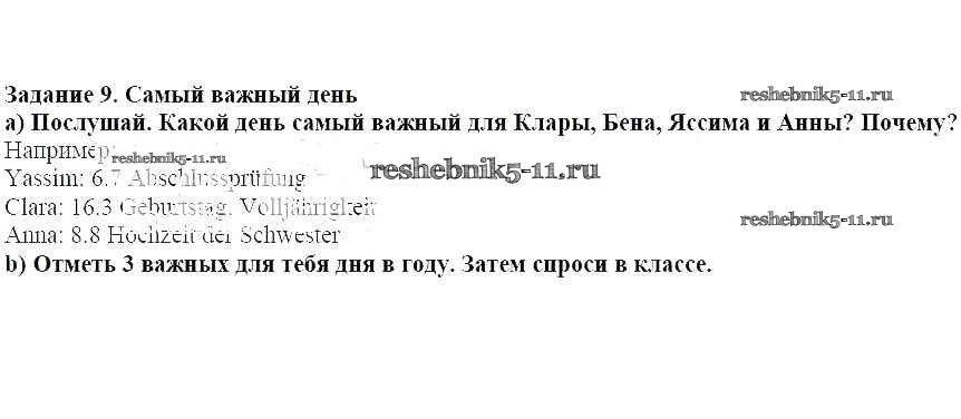 Готовая домашняя работа с ответами по Немецкому языку за 7 класс Аверин, Джин, Рорман Учебник Horizonte Просвещение 2016 ФГОС - Глава 7. Больше обо мне 9