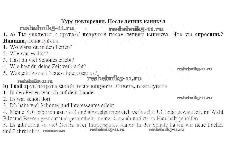 Готовая домашняя работа с ответами по Немецкому языку за 7 класс Бим, Садомова, Фомичева, Крылова Рабочая тетрадь Просвещение 2012 ФГОС - Курс повторения. После летних каникул 1