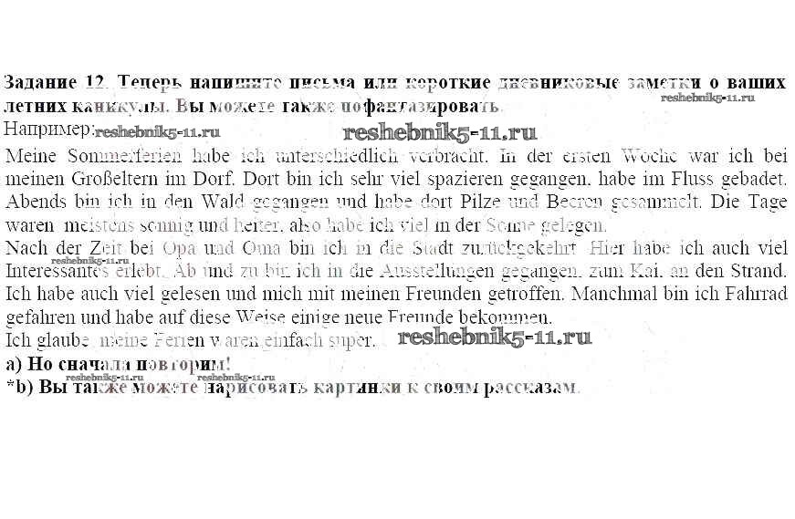 Готовая домашняя работа с ответами по Немецкому языку за 7 класс Бим, Садомова Учебник Академический школьный учебник Просвещение 2019 ФГОС - Курс повторения. После летних каникул 12
