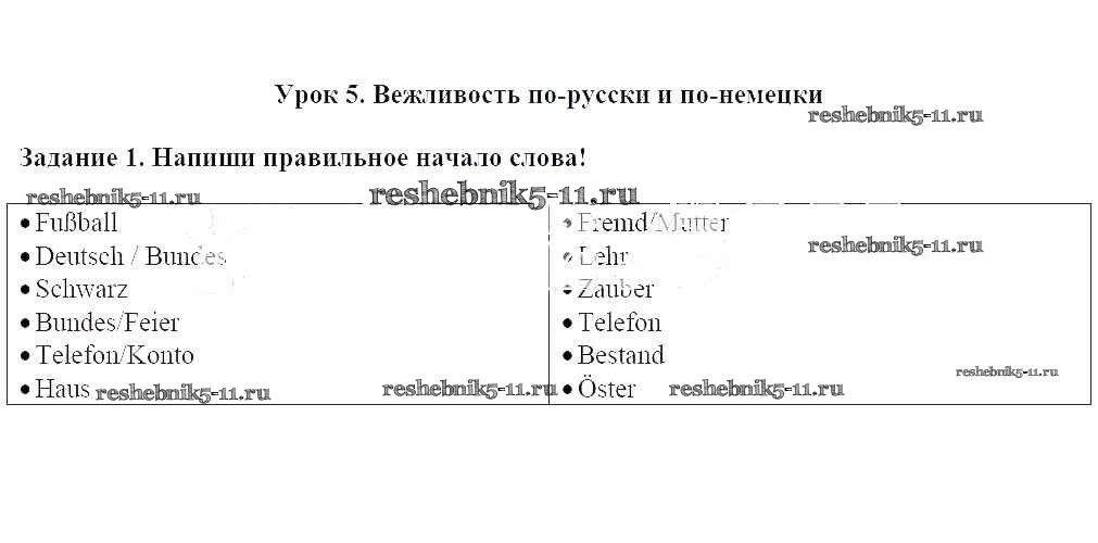 Готовая домашняя работа с ответами по Немецкому языку за 7 класс Радченко, Хебелер Учебник Alles Klar! Дрофа 2020 ФГОС - Урок 5. Вежливость по-русски и по-немецки 1