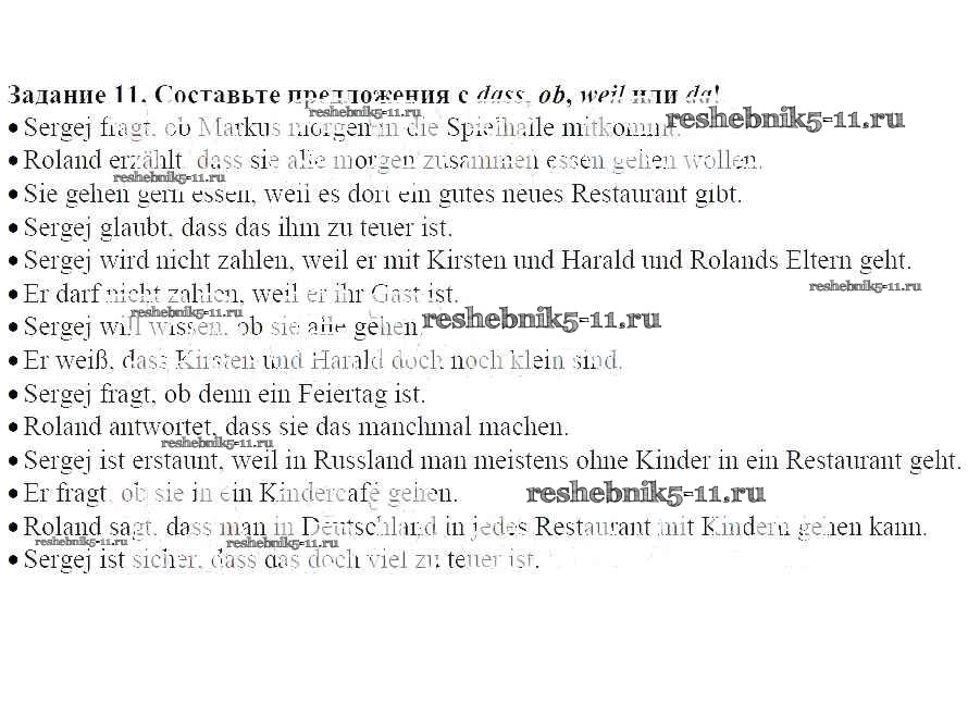 Готовая домашняя работа с ответами по Немецкому языку за 7 класс Радченко, Хебелер Учебник Alles Klar! Дрофа 2020 ФГОС - Урок 15. Бар или кафе 11