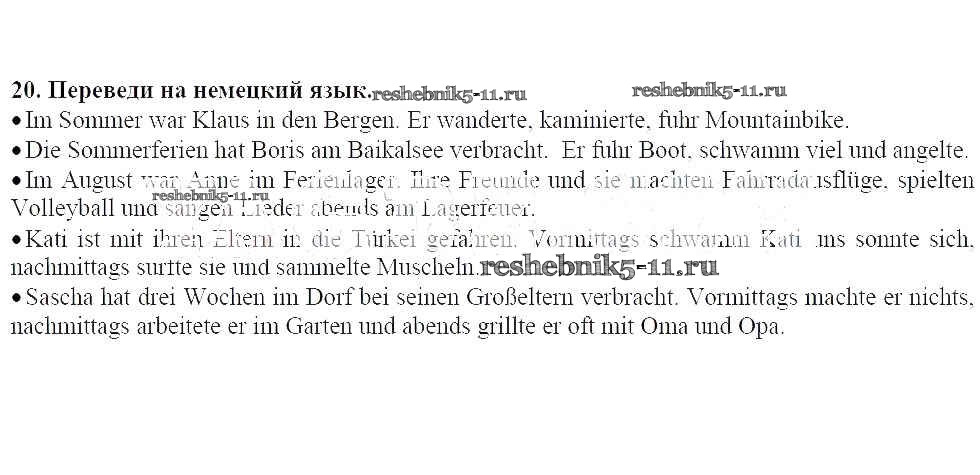 Готовая домашняя работа с ответами по Немецкому языку за 7 класс Радченко, Глушак Рабочая тетрадь Wunderkinder Просвещение 2012 ФГОС - Глава 1. Летние каникулы 20
