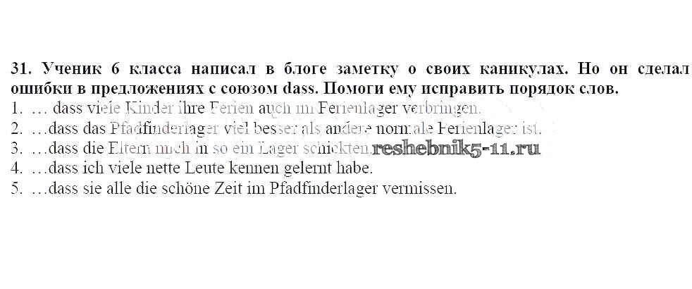 Готовая домашняя работа с ответами по Немецкому языку за 7 класс Радченко, Глушак Рабочая тетрадь Wunderkinder Просвещение 2012 ФГОС - Глава 1. Летние каникулы 31