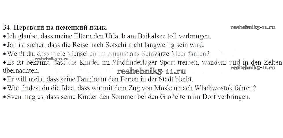 Готовая домашняя работа с ответами по Немецкому языку за 7 класс Радченко, Глушак Рабочая тетрадь Wunderkinder Просвещение 2012 ФГОС - Глава 1. Летние каникулы 34