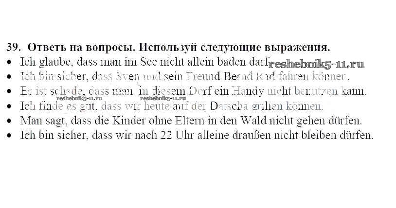 Готовая домашняя работа с ответами по Немецкому языку за 7 класс Радченко, Глушак Рабочая тетрадь Wunderkinder Просвещение 2012 ФГОС - Глава 1. Летние каникулы 39