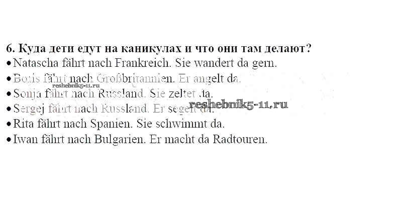 Готовая домашняя работа с ответами по Немецкому языку за 7 класс Радченко, Глушак Рабочая тетрадь Wunderkinder Просвещение 2012 ФГОС - Глава 1. Летние каникулы 6